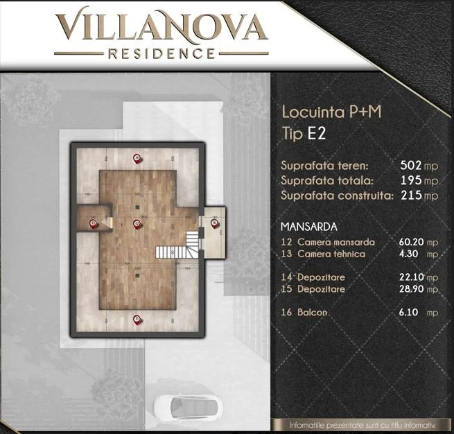 Mansarda, spațiu util, deschis și configurabil, cu sistem de încălzire și răcire, poate deveni inclusiv cameră pentru sport (de 60 mp), birou, loc de joacă sau hobby room. Cu lumină naturală și acces la balcon, oferă și generoase spații de depozitare (de 50 mp).